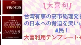 トレンド 【大喜利】台湾有事の高市総理発言に中国の日本への脅迫を笑いに変えたX民!テンプレートも紹介! 高市総理が、11月7日の衆議院予算委員会で台湾有事は存立危機事態になり得ると発言した件で、中国サイドが対抗する厳しい姿勢... 2025.11.18 トレンド政治