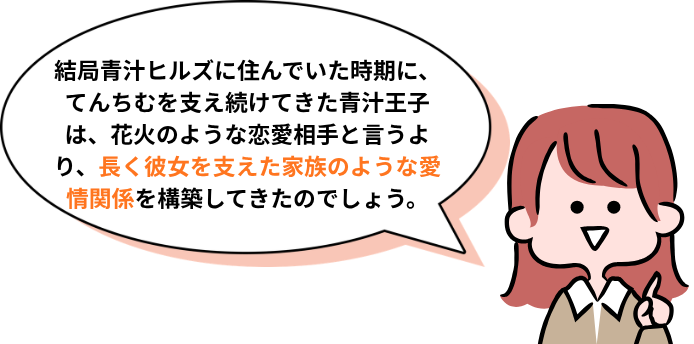 結局青汁ヒルズに住んでいた時期に、一緒に旅行に行ったり長く共に過ごし、てんちむを支え続けてきた青汁王子は、花火のような恋愛相手と言うより、長く彼女を支えた家族のような愛情関係を構築してきたのでしょう。