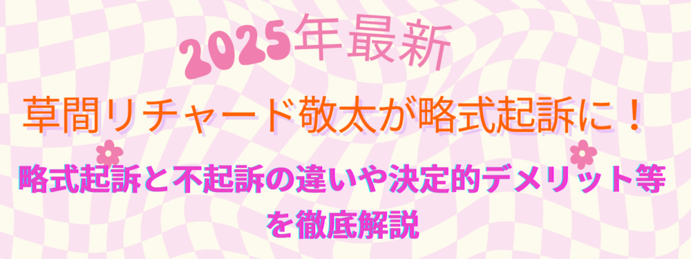 今回の記事では、「略式起訴」とは何か、不起訴処分との違い、そのメリット・デメリット、そしてなぜ草間リチャード敬太さんが略式起訴という処分になったのか、その背景を詳しく解説します。