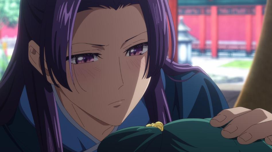 宴を抜け出した猫猫を追った壬氏は、猫猫が里樹妃を嫁に薦める発言をしたことに激怒する。