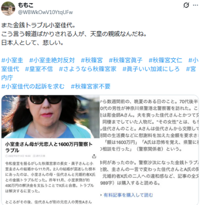 最近は皇室ネタもにおわせる本を出版し、紀子さまが戦々恐々としていると伝えられた。
