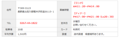 【軽井沢】盛盛亭の詳細 地図 住所 営業時間など