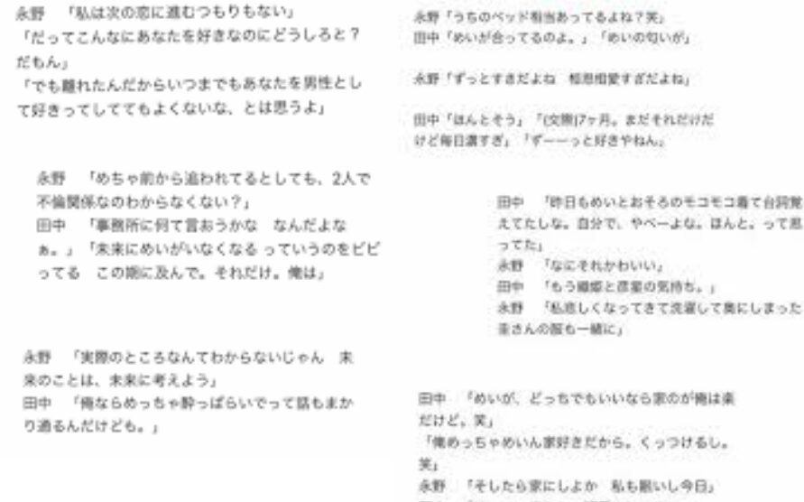 週刊文春に掲載された記事には“手つなぎショット”やLINEの内容、田中さんが永野さんの自宅マンションを訪れてた時の会話まで詳細に報じられていながら、最後まで認めてていない為、真実は不明のままだ。