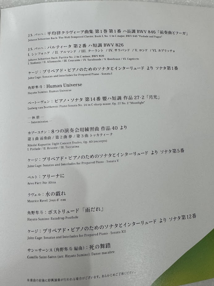 中盤のベートーベンの「月光」は多くの人が知る有名な局で、これも「のだめカンタービレ」に出てくるので、観客の方々も、「のだめで聞き覚えがあるから効いていて楽しかったね」などと話していました。