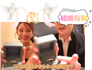 さらに婚約指輪と重ね付けをし、てんちむさんは、「ずっと支えます」「ずっと見方でいます」と誓います。