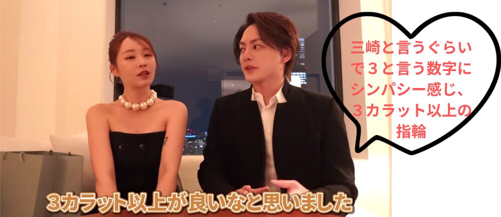 青汁王子は3という数字が好きで、三崎の3でもあるので、3カラット以上と決めたそうです。
